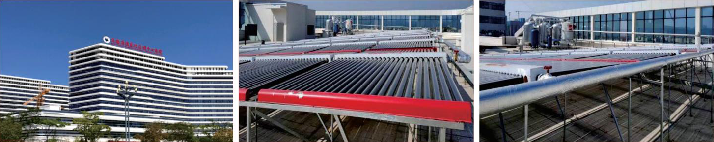 系統(tǒng)概述:安裝真空管集熱器5300管,集熱面積689㎡配合醫(yī)院容積式換熱器運行